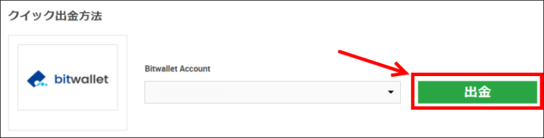 XM出金一覧画面からBitwalletの「出金」ボタンをクリックします。