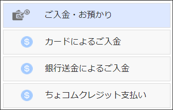 Bitwallet入金は「クレジットカード」「銀行振込」「ちょコムクレジット」の3種類となります。
