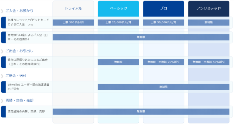 | 銀行入金 | 無制限 | 無制限 | 無制限 | 無制限 |
