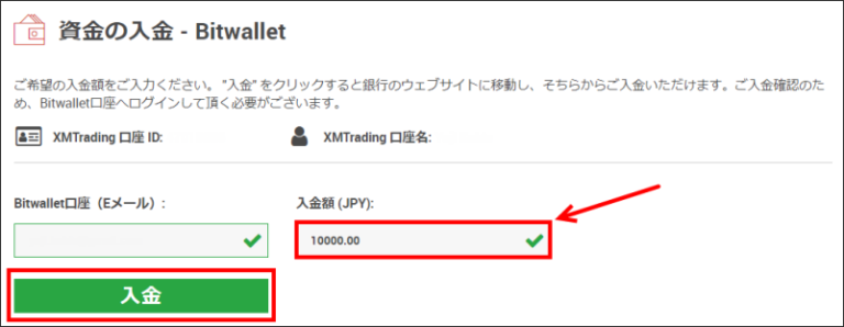 - bitwalletに資金が入っていれば、即時XMに入金されます。
