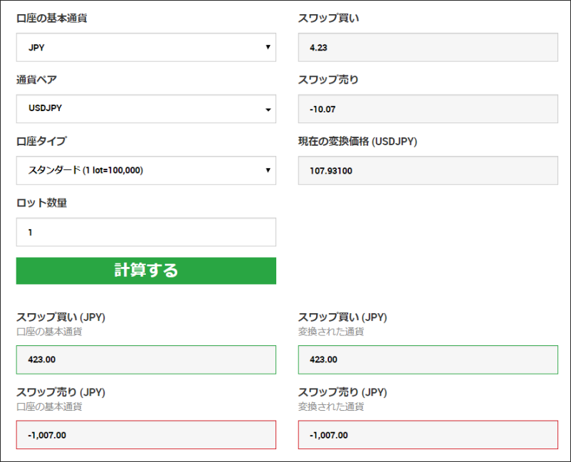 XMのスワップ計算機を使うとスワップポイントが日本円で表示してくれるのでおすすめです。