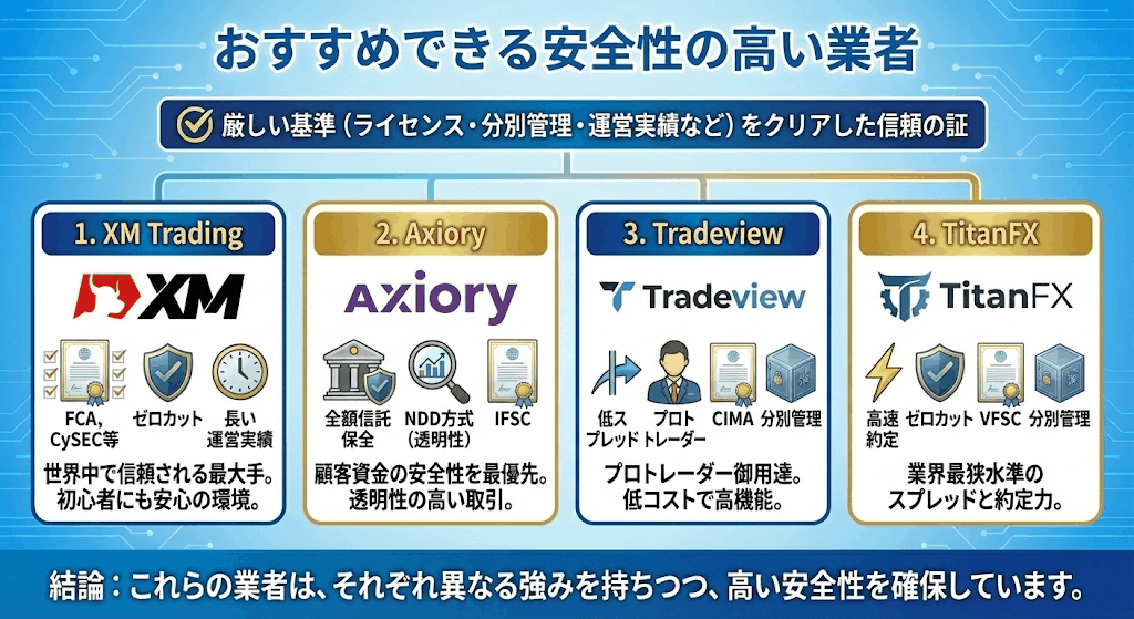 実績を考えるとXMはまず安心して良いでしょう。