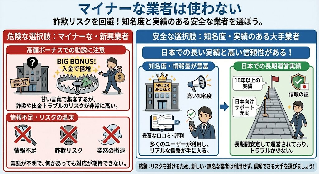 また、海外FXでやめておいた方が良い業者についても紹介します。