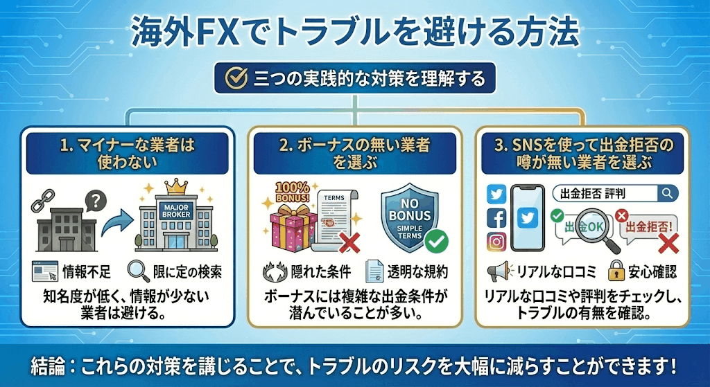 海外FXでトラブルを避ける方法について紹介します。